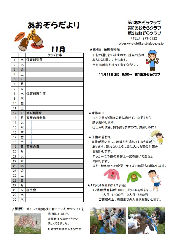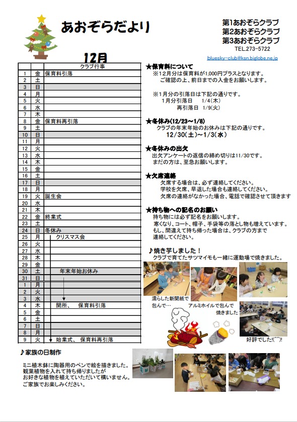 第1クラブは「冬のものビンゴ」、第2クラブは「紙芝居」と「玉入れ」、第3クラブは「本の読み聞かせ&クイズ」「席替え」をしました。